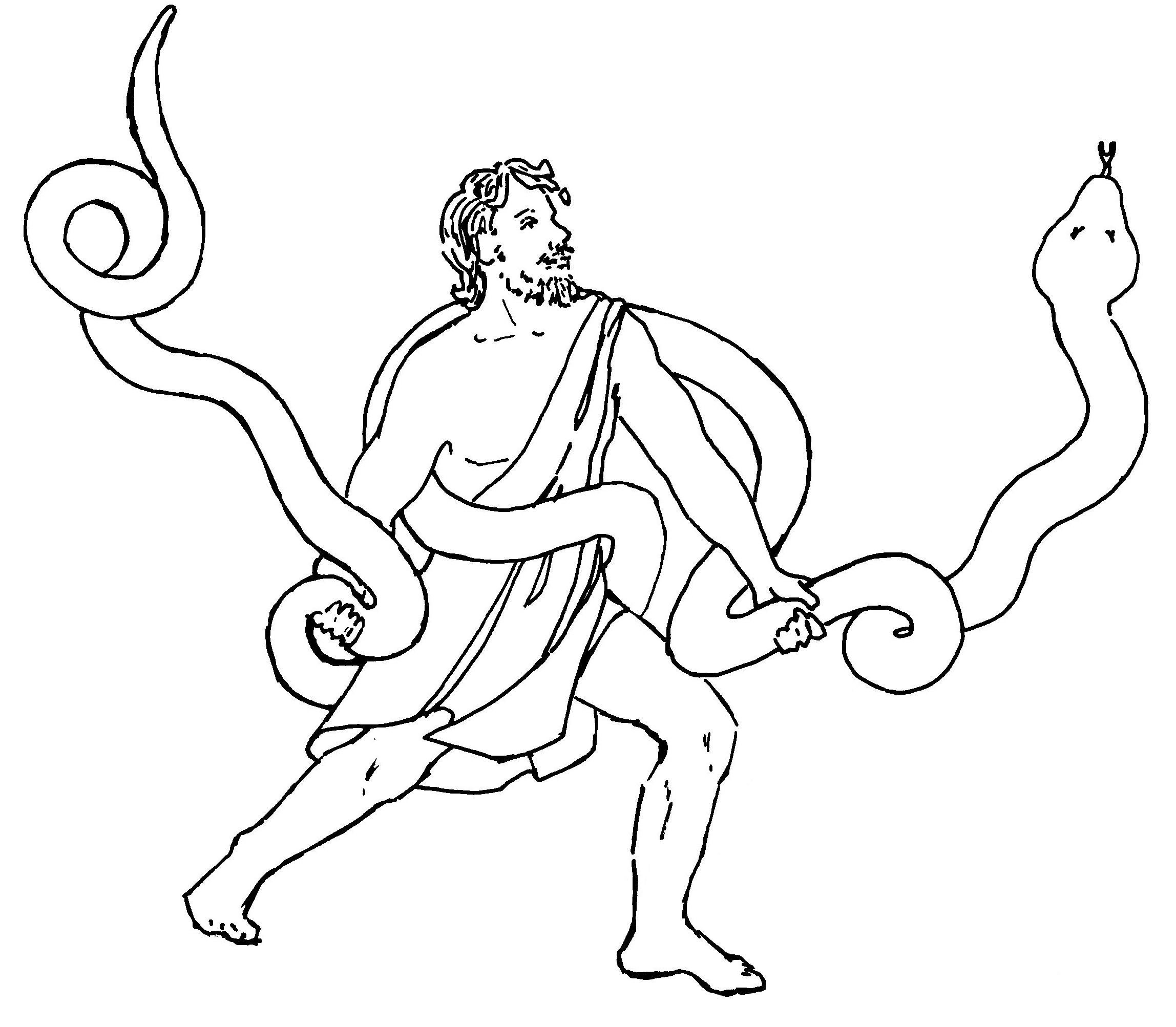 Serpens Scorpio’s first decan, Serpens, occupies the first one-third portion of Scorpio’s ecliptic arc. Whenever celestial bodies are within this portion, they directly refer to Serpens. This decan is depicted as a long snake wrapped around the body of the warrior, Ophiuchus. It is divided in half by Ophiuchus’ body and is the only constellation in the heavens that is divided into two parts. |