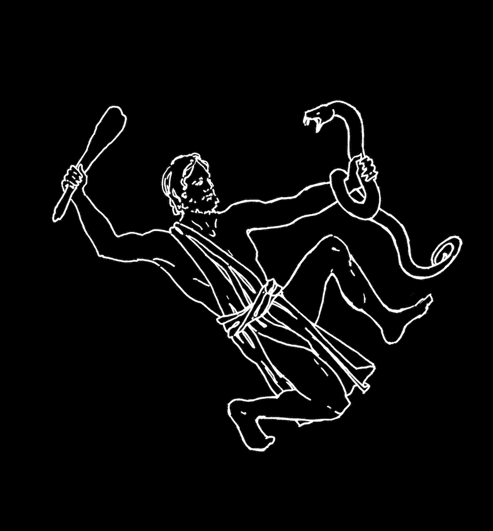 hercules Scorpio’s third and final decan (in Scorpio’s third ecliptic segment) is Hercules, the wounded warrior. Even though Hercules is wounded, he is clubbing a serpent-like creature, making him both “the one who is wounded and the one who also wounds” (reflecting the name of his principal star Ras al Gethi, aka Rasalgethi, “the head of him who bruises,” which is similar to the meaning of Ophiuchus’ principal star). Apparently, Hercules gave more than he got and was willing to be wounded in order to rescue others. Hercules is the inverted counterpart of Ophiuchus, with their heads side-by-side and their bodies in opposite directions. Ophiuchus is stomping a scorpion and Hercules is clubbing a serpent. They are like heavenly twin towers who are prophesying the doom of serpents, scorpions, and the kingdom of darkness. |