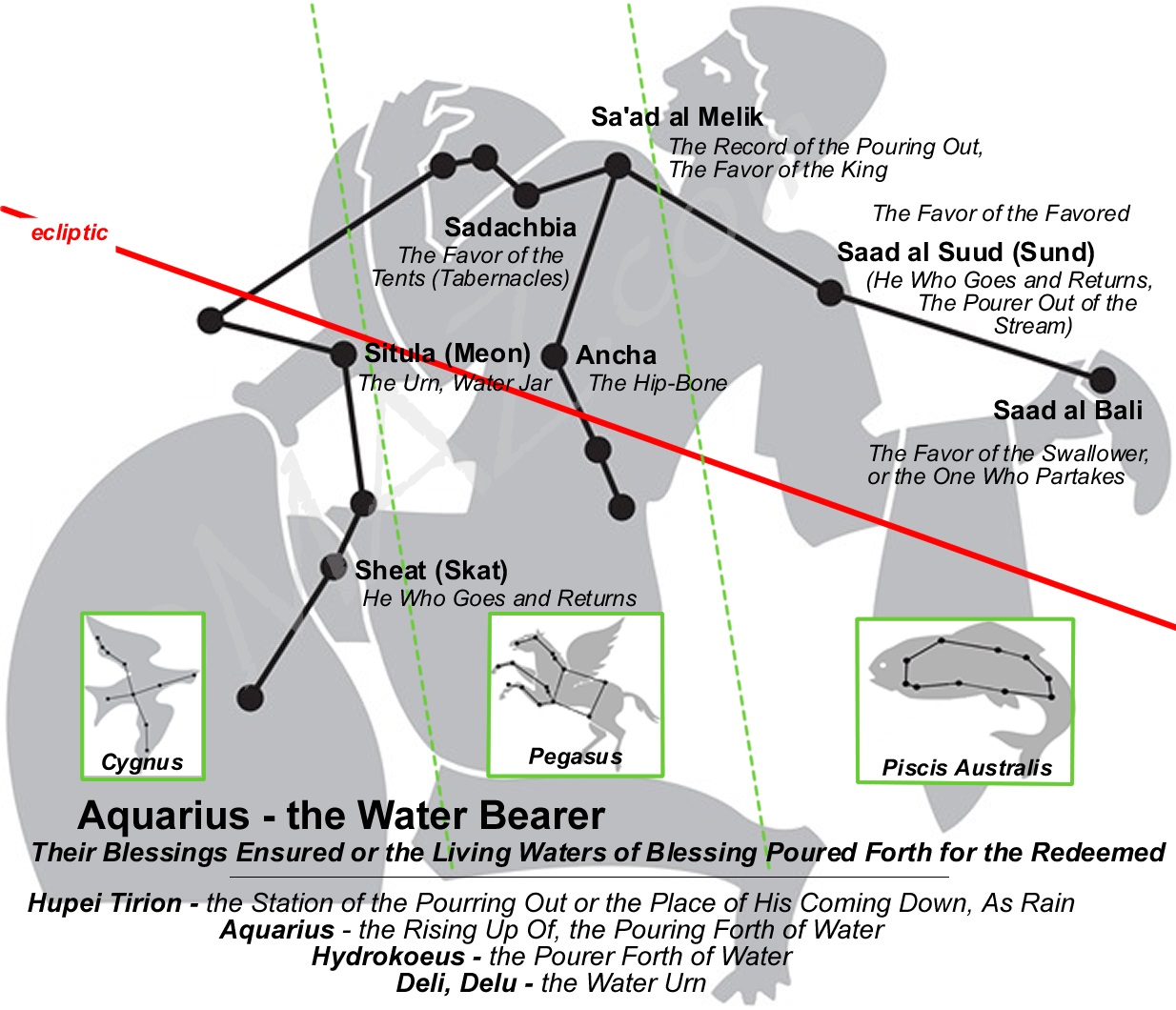 The Blessings Ensured Aquarius, the water bearer with the poured-out urn often pictured at belly level, could be indicative of the coming of the Holy Spirit. Jesus referenced this when He said, “out of your belly shall flow rivers of living water.” This constellation indicates great spiritual ability—an affinity for the energizing of the Holy Spirit. |