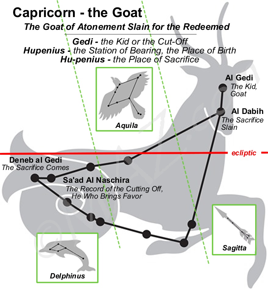 capricorn Capricorn (the goat) - He is the slain goat, as the scapegoat of redemption.