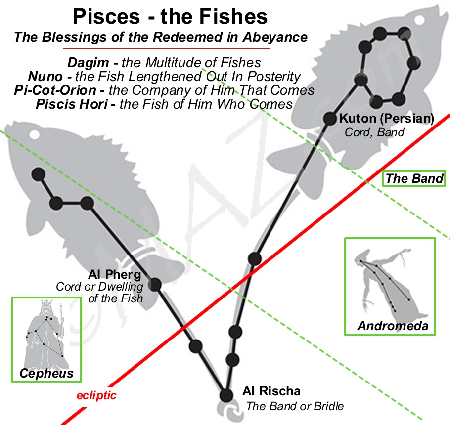 pisces Pisces (the fishes) - He is the Redeemer of both Jews and Gentiles, tied together by the band of His sacrifice for all.