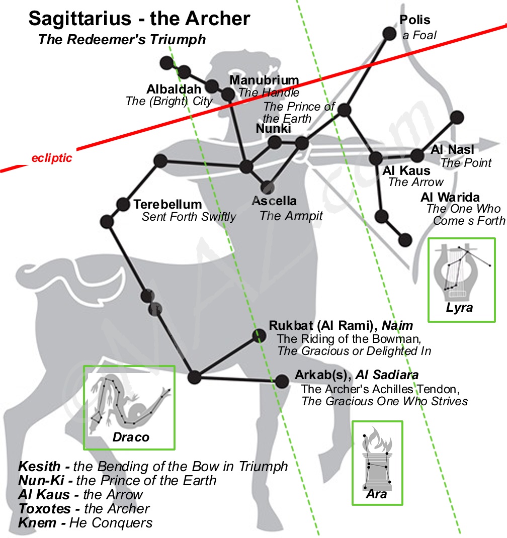 sagittarius Sagittarius (the archer) - He is the victorious King returning after being wounded.